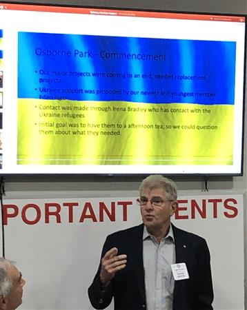 David Motta and Trish Lynch, from the Rotary Clubs of Osborne Park and Karrinyup respectively, came to explain the plight of Ukrainian refugees now living in Perth. The primary problem is that many such people speak little or no English, and they are dotted around the metropolitan area according to where they can find accommodation. As a result, nobody really knows who these people are or how they can be contacted, so the Osborne Park Rotary Club decided to put on a tea party in September 2022 – publicising it as best they could via Facebook and the like – and 50 Ukrainian people turned up! Communication was difficult, but the networking aspect was a success as was the singing. So, another get-together was organised to celebrate the Orthodox Christmas in January 2023, and 120 people came along and enjoyed tea, coffee and wine! In the meantime Trish Lynch established contact with Irena via Facebook and this resulted in the Karrinyup Club’s Farmers Market donating produce to the Ukrainian people in need. There were all sorts of practical difficulties with this, but the Ukrainians now deal with it themselves. A few donors of cash popped up, and this had to be handled by establishing an account with RAWCS, otherwise there could be no paper trail or audit. Now verified Ukrainian students can apply for a $200 grant to help them get set up for schooling. The urgent imperative is to set up a data base so that the refugees can be contacted and their needs established, as this will enable help to be co-ordinated to maximum effect. Guests at our meeting were Ukrainian-born Alla and Mariana, as well as Eden, and all three ladies offered very helpful suggestions. Much to be done!Helping Ukrainian Refugees